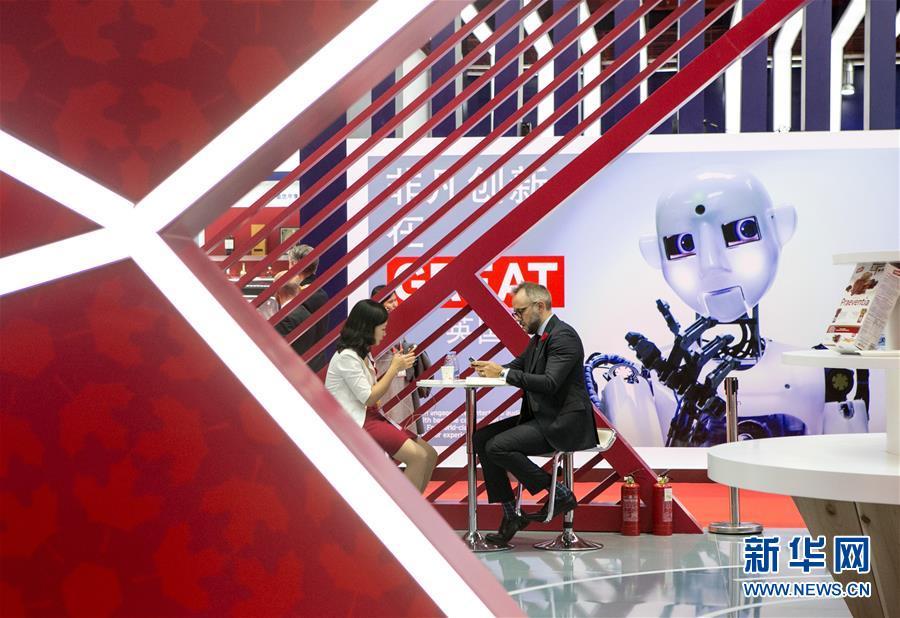 11月5日,參展商在加拿大展館內(nèi)交流。 新華社記者 李京 攝