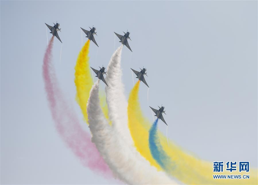 11月6日,中國空軍八一飛行表演隊(duì)在航展現(xiàn)場進(jìn)行飛行表演。當(dāng)日,第十二屆中國國際航空航天博覽會在珠海開幕。 新華社記者鄧華攝