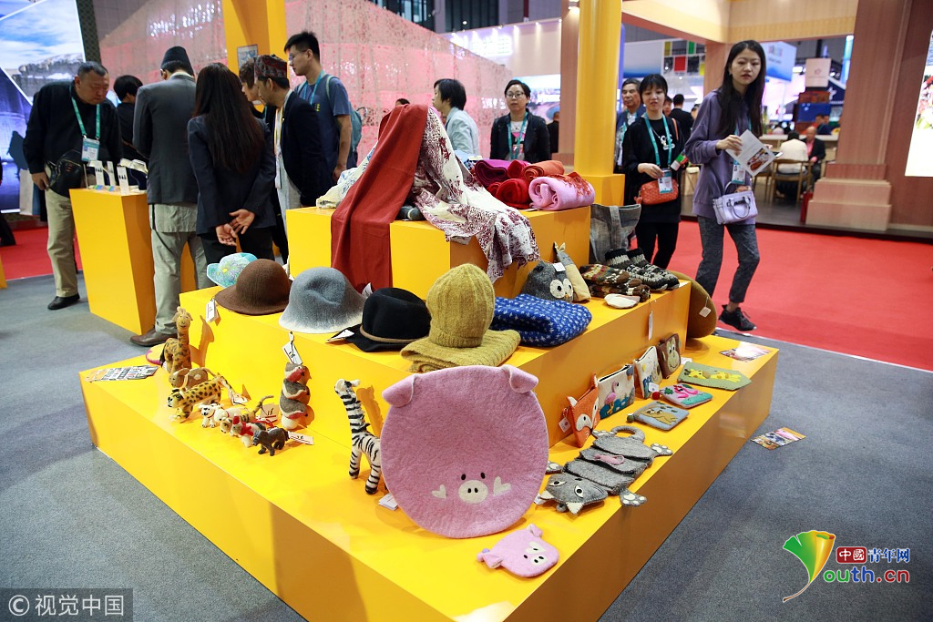 2018年11月6日,上海,首屆中國國際進口博覽會國家展上,共有82個國家、3個國際組織設(shè)立了71個展臺。尼泊爾館。視覺中國