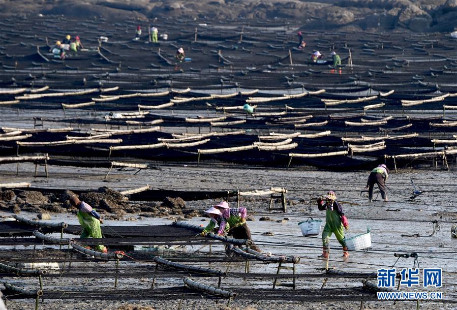 10月24日,福建莆田蔣山村村民在收獲紫菜。 新華社記者姜克紅 攝