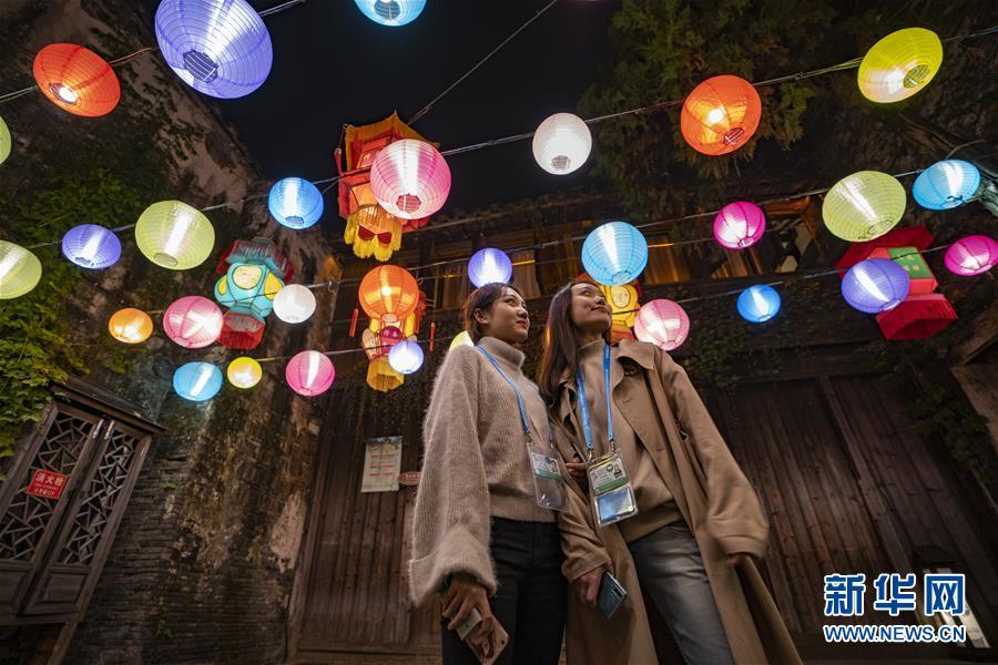 11月6日,兩個女孩在浙江省桐鄉(xiāng)市烏鎮(zhèn)留影。 新華社記者才揚攝