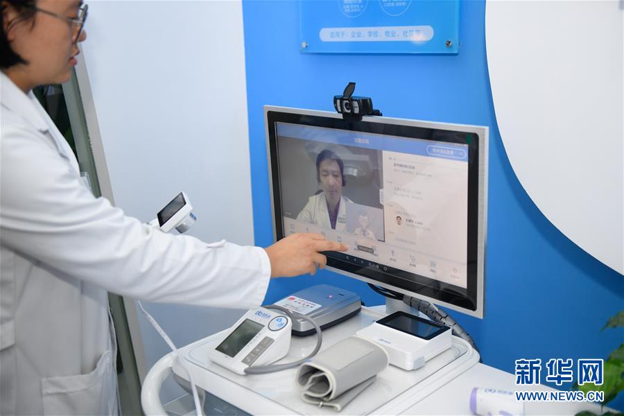 11月6日,烏鎮(zhèn)互聯(lián)網(wǎng)醫(yī)院的員工在操作“智能醫(yī)務(wù)室”與醫(yī)生的視頻連線功能。據(jù)了解,“智能醫(yī)務(wù)室”由智能移動(dòng)醫(yī)療一體機(jī)、智能藥柜以及一系列檢查設(shè)備組成,根據(jù)健康檔案和檢查結(jié)果,視頻連接家庭醫(yī)生就能解決常見(jiàn)的醫(yī)療健康問(wèn)題。 新華社記者黃宗治攝