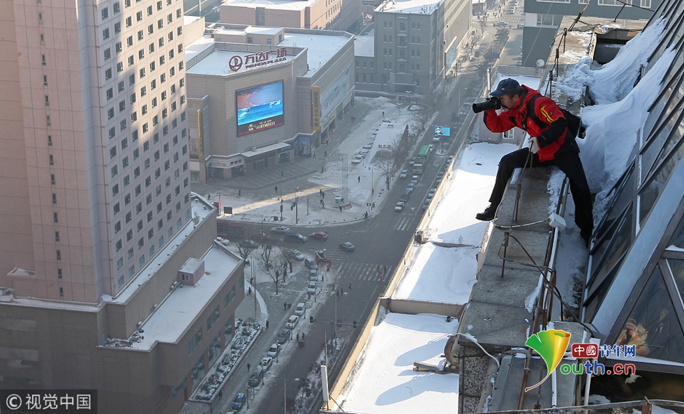 2012年12月4日,為了一個(gè)好的角度,郭銳經(jīng)常爬上長春的各種高樓。 圖片作者:白石/視覺中國