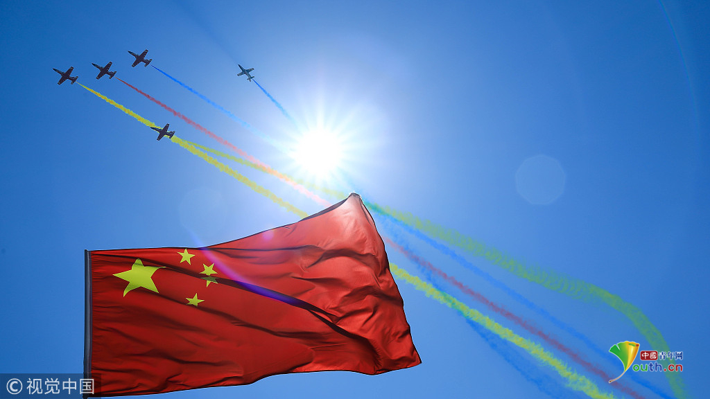 2018年11月7日,空軍紅鷹隊(duì)在廣東省珠海市第十三屆中國(guó)航空航天博覽會(huì)上進(jìn)行飛行表演。視覺中國(guó)