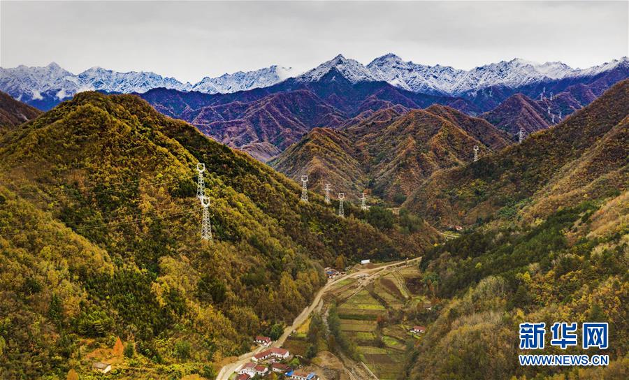 11月5日無人機拍攝的陜西省漢中市佛坪縣城旁的秦嶺景色。 新華社記者陶明攝
