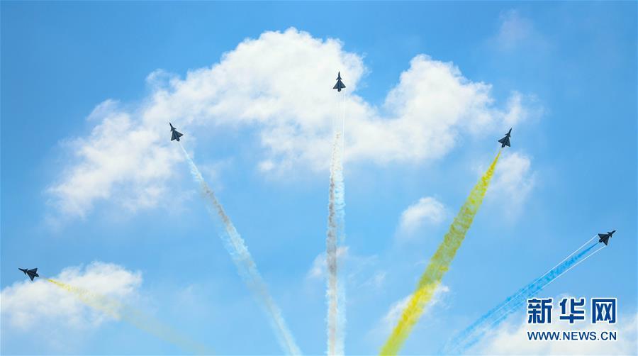 11月6日,中國(guó)空軍八一飛行表演隊(duì)在航展現(xiàn)場(chǎng)進(jìn)行飛行表演。當(dāng)日,第十二屆中國(guó)國(guó)際航空航天博覽會(huì)在珠海開幕。 新華社記者鄧華攝