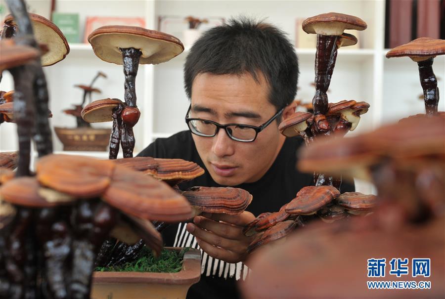 6月20日,廣宗縣大柏社村村民王志恒在展示制作的靈芝盆景。 近年來(lái),河北省廣宗縣大柏社村積極引導(dǎo)農(nóng)民結(jié)合市場(chǎng)需求調(diào)整農(nóng)業(yè)產(chǎn)業(yè)結(jié)構(gòu),采取“公司+合作社+基地+農(nóng)戶”的經(jīng)營(yíng)模式,發(fā)展特色靈芝種植,并開(kāi)發(fā)出靈芝盆景、靈芝孢子粉等相關(guān)衍生產(chǎn)品,開(kāi)辟出一條富農(nóng)創(chuàng)收新路徑。目前,大柏社村靈芝種植面積近百畝,種植各類靈芝5000余株,帶動(dòng)120余名農(nóng)民就業(yè)增收。新華社記者朱旭東攝