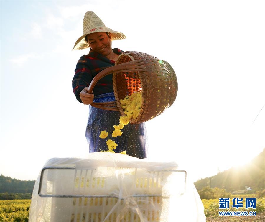 11月8日,婺源縣思口鎮(zhèn)農(nóng)戶在采摘皇菊。