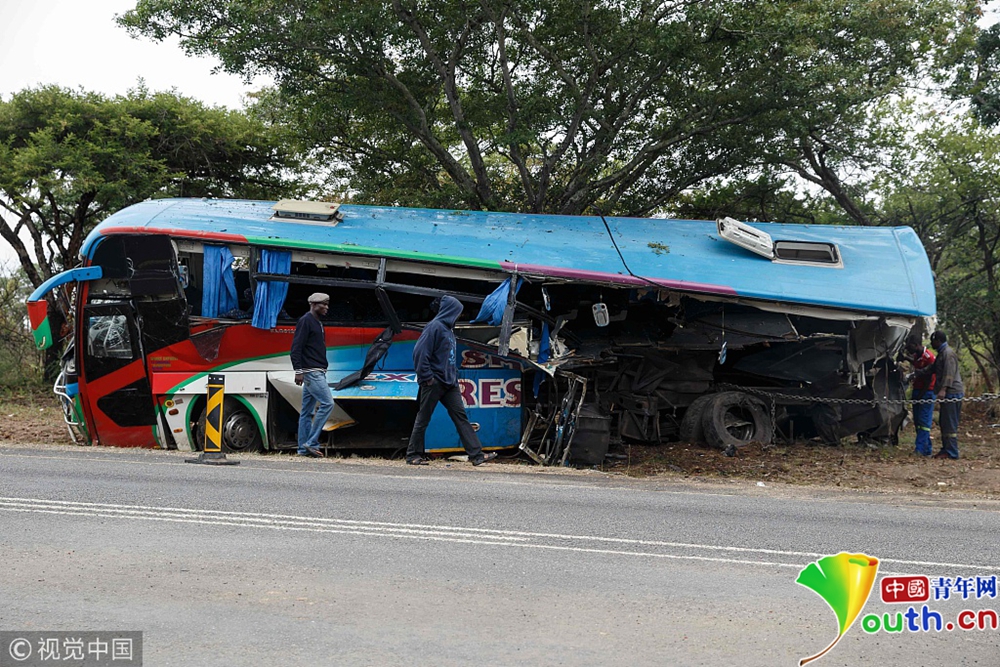 當(dāng)?shù)貢r間2018年11月8日,津巴布韋魯薩佩,津巴布韋警方7日表示,該國東部當(dāng)天傍晚發(fā)生一起兩輛大巴相撞事故,造成至少47人死亡。事故發(fā)生在東部馬尼卡蘭省魯薩佩地區(qū),兩輛載有乘客的大巴迎面相撞,造成至少47人死亡,死者中包括45名成人和2名兒童。