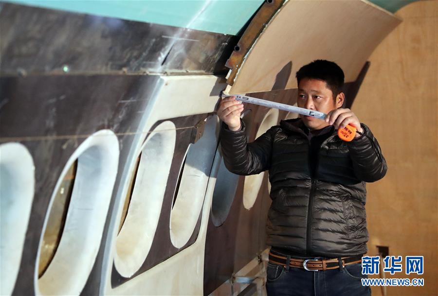 遼寧開(kāi)原農(nóng)民朱躍從小很喜歡飛機(jī),從2017年開(kāi)始自掏腰包花費(fèi)200多萬(wàn)元和團(tuán)隊(duì)成員在老城街道前三臺(tái)子村純手工制作了一架仿“空客320”飛機(jī)。目前,“飛機(jī)”外殼已經(jīng)做好,進(jìn)入內(nèi)部裝修和外部噴漆階段,等“飛機(jī)”建造好以后,他想把“飛機(jī)”做成主題餐廳、婚紗攝影和飛行駕駛體驗(yàn)于一體的項(xiàng)目。“它雖然不能飛,整個(gè)制作過(guò)程也很艱難,但圓了自己的飛機(jī)夢(mèng)”,朱躍說(shuō)。