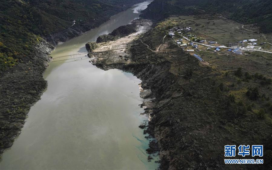 10月20日拍攝的西藏雅魯藏布江米林縣堰塞湖自然過流后的加拉村。 10月19日13時30分,西藏雅魯藏布江米林縣堰塞湖開始自然過流。記者從應(yīng)急管理部牽頭的聯(lián)合工作組獲悉,截至20日7時,雅魯藏布江堰塞湖壩前水位已下降56米,估算留存水量1.6億立方米,堰塞湖洪水威脅得到緩解,防洪安全風(fēng)險大大減輕,并將繼續(xù)降低。 10月20日,記者乘坐直升機從空中拍攝了雅魯藏布江堰塞湖自然過流的畫面。 新華社記者普布扎西攝