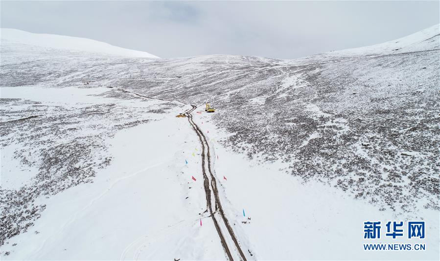 西藏道路搶通人員在西藏昌都市江達縣海拔4500米左右的高山牧場上搶通道路(10月14日攝)。新華社記者劉東君攝