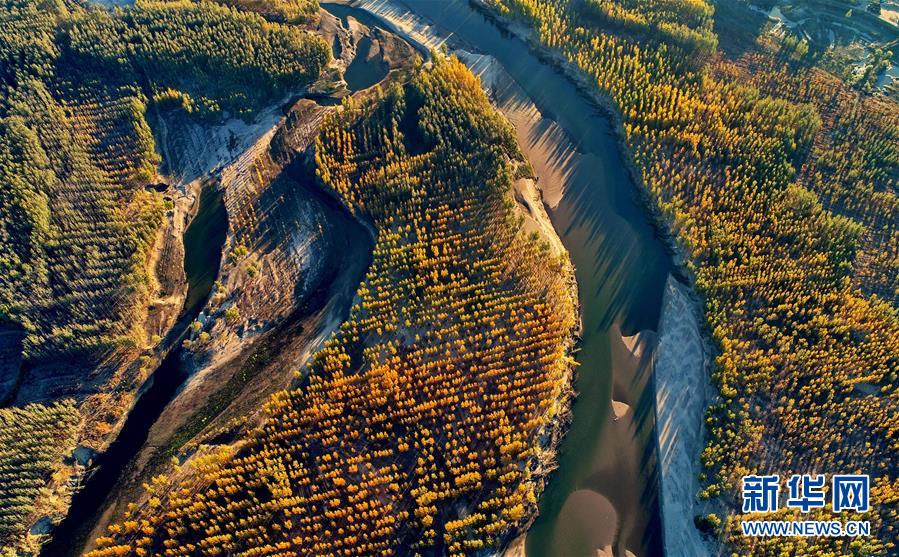 從空中俯瞰新疆尉犁縣喀爾曲尕鄉(xiāng),兩條道路沿著塔里木河岸邊的金色胡楊向前延伸(10月25日無人機拍攝)。 10月中下旬,靜靜的塔里木河中下游一片金黃。胡楊深處,條條小路蜿蜒綿長通向遠方,引人入勝。 塔里木河是中國最長的內(nèi)陸河,這一區(qū)域原始胡楊林分布較為集中。隨著塔里木河連續(xù)19次向下游生態(tài)輸水,為胡楊林“解渴”,塔河兩岸生態(tài)得到明顯改善,沙地面積逐年減少。 新華社記者趙戈攝