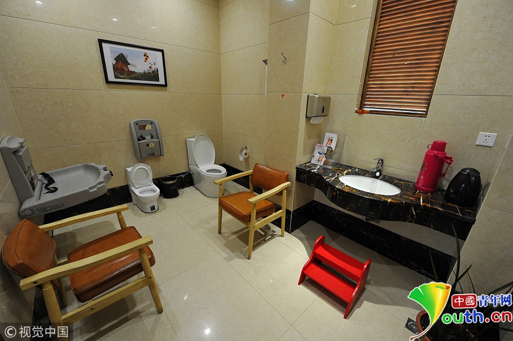 還設(shè)有第三衛(wèi)生間,是專為殘疾人、以及帶著小孩的父母們提供的一個私密空間。免費上這樣超豪華、且復(fù)古又特有文藝范兒的公廁,能讓人感受到一種如“家”般的舒適,像是進(jìn)了五星級酒店似的。