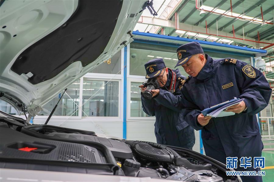 11月19日,重慶海關(guān)的工作人員在口岸車檢中心對(duì)首趟中歐班列商品車專用車運(yùn)輸國(guó)際班列運(yùn)輸?shù)倪M(jìn)口整車進(jìn)行查驗(yàn)。
