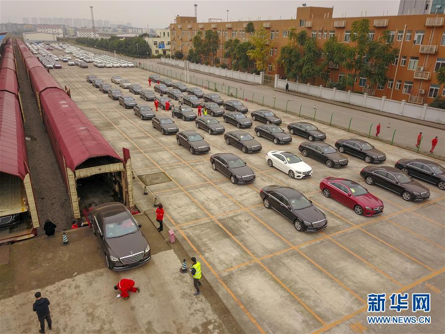 當日,首趟中歐班列商品車專用車運輸國際班列搭載的112臺奔馳品牌進口整車在重慶順利完成通關。