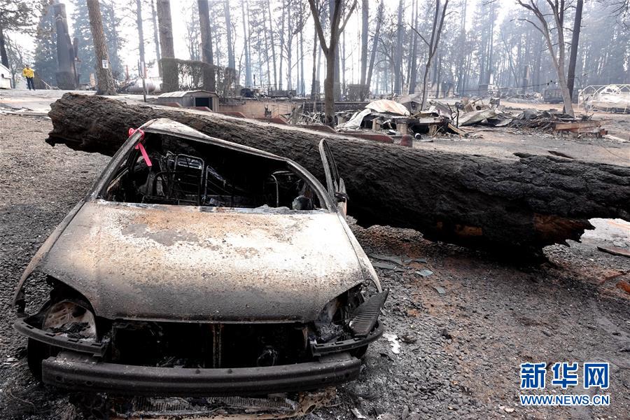這是11月20日在美國加利福尼亞州比尤特縣天堂鎮(zhèn)拍攝的山火廢墟。