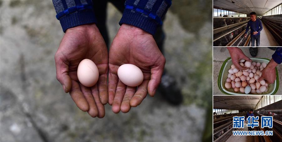 拼版照片:左圖為貧困戶李先強手捧養(yǎng)殖合作社生產(chǎn)的雞蛋(11月19日攝);右圖為李先強在雞舍里撿雞蛋(照片均攝于11月19日)。李先強是融水苗族自治縣香粉鄉(xiāng)香粉村的貧困戶,從2016年開始,他和15個貧困戶一起發(fā)展土雞養(yǎng)殖。目前合作社養(yǎng)有3000多只雞,年產(chǎn)雞蛋1萬多斤。 廣西融水苗族自治縣是國家扶貧工作重點縣,全縣“九山半水半分田”,生活生產(chǎn)環(huán)境較為惡劣,脫貧攻堅任務艱巨,目前還有7.68萬貧困人口。面對經(jīng)濟發(fā)展落后、貧困面廣且程度深的現(xiàn)狀,當?shù)匕衙撠毠耘c創(chuàng)新產(chǎn)業(yè)扶持相結(jié)合,依托生態(tài)資源優(yōu)勢,實施“特色產(chǎn)業(yè)富民行動”,通過發(fā)展特色民族旅游、林下經(jīng)濟和特色養(yǎng)殖業(yè)等扶貧產(chǎn)業(yè),帶動貧困群眾依靠勤勞的雙手,拔窮根摘窮帽,實現(xiàn)脫貧致富。據(jù)了解,目前全縣貧困戶參與特色產(chǎn)業(yè)發(fā)展的有2.9萬戶,扶貧產(chǎn)業(yè)覆蓋率達95%。 新華社記者 黃孝邦 攝