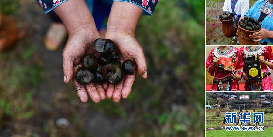 拼版照片:左圖為在拱洞鄉(xiāng)龍令村,貧困戶龍亞手捧剛剛收獲的田螺(11月17日攝);右上圖為龍亞展示收獲的田螺(11月17日攝);右中圖為龍令村養(yǎng)殖的田螺已經成為柳州螺螄粉的原材料(10月28日攝);右下圖為龍亞(右一)在稻田里撈田螺(11月17日攝)。今年,拱洞鄉(xiāng)大力發(fā)展稻田養(yǎng)螺產業(yè),目前,全鄉(xiāng)田螺養(yǎng)殖面積突破4000畝,參與的貧困農戶有600多戶。 廣西融水苗族自治縣是國家扶貧工作重點縣,全縣“九山半水半分田”,生活生產環(huán)境較為惡劣,脫貧攻堅任務艱巨,目前還有7.68萬貧困人口。面對經濟發(fā)展落后、貧困面廣且程度深的現(xiàn)狀,當?shù)匕衙撠毠耘c創(chuàng)新產業(yè)扶持相結合,依托生態(tài)資源優(yōu)勢,實施“特色產業(yè)富民行動”,通過發(fā)展特色民族旅游、林下經濟和特色養(yǎng)殖業(yè)等扶貧產業(yè),帶動貧困群眾依靠勤勞的雙手,拔窮根摘窮帽,實現(xiàn)脫貧致富。據(jù)了解,目前全縣貧困戶參與特色產業(yè)發(fā)展的有2.9萬戶,扶貧產業(yè)覆蓋率達95%。 新華社記者 黃孝邦 攝