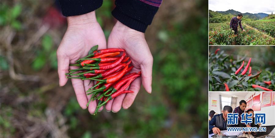 拼版照片:左圖為在大浪鎮(zhèn)大德村,龍德手捧剛剛收獲的辣椒;右上圖為龍德在摘辣椒;右中圖為合作社種植的辣椒;右下圖為龍德(中)在辦公室里工作(照片均攝于11月18日)。龍德是大德村的致富帶頭人,目前合作社種植有400多畝辣椒,帶動(dòng)106戶貧困戶參與。 廣西融水苗族自治縣是國(guó)家扶貧工作重點(diǎn)縣,全縣“九山半水半分田”,生活生產(chǎn)環(huán)境較為惡劣,脫貧攻堅(jiān)任務(wù)艱巨,目前還有7.68萬(wàn)貧困人口。面對(duì)經(jīng)濟(jì)發(fā)展落后、貧困面廣且程度深的現(xiàn)狀,當(dāng)?shù)匕衙撠毠?jiān)與創(chuàng)新產(chǎn)業(yè)扶持相結(jié)合,依托生態(tài)資源優(yōu)勢(shì),實(shí)施“特色產(chǎn)業(yè)富民行動(dòng)”,通過(guò)發(fā)展特色民族旅游、林下經(jīng)濟(jì)和特色養(yǎng)殖業(yè)等扶貧產(chǎn)業(yè),帶動(dòng)貧困群眾依靠勤勞的雙手,拔窮根摘窮帽,實(shí)現(xiàn)脫貧致富。據(jù)了解,目前全縣貧困戶參與特色產(chǎn)業(yè)發(fā)展的有2.9萬(wàn)戶,扶貧產(chǎn)業(yè)覆蓋率達(dá)95%。 新華社記者 黃孝邦 攝