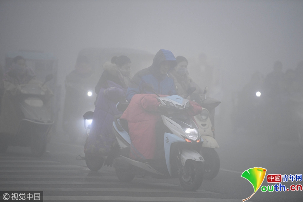 全國多地出現(xiàn)大霧天氣 市民霧中穿行