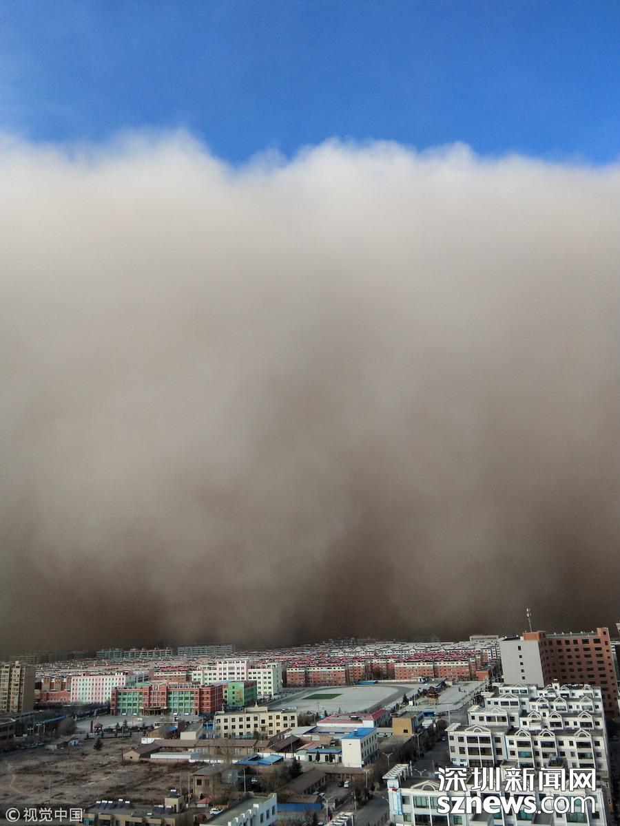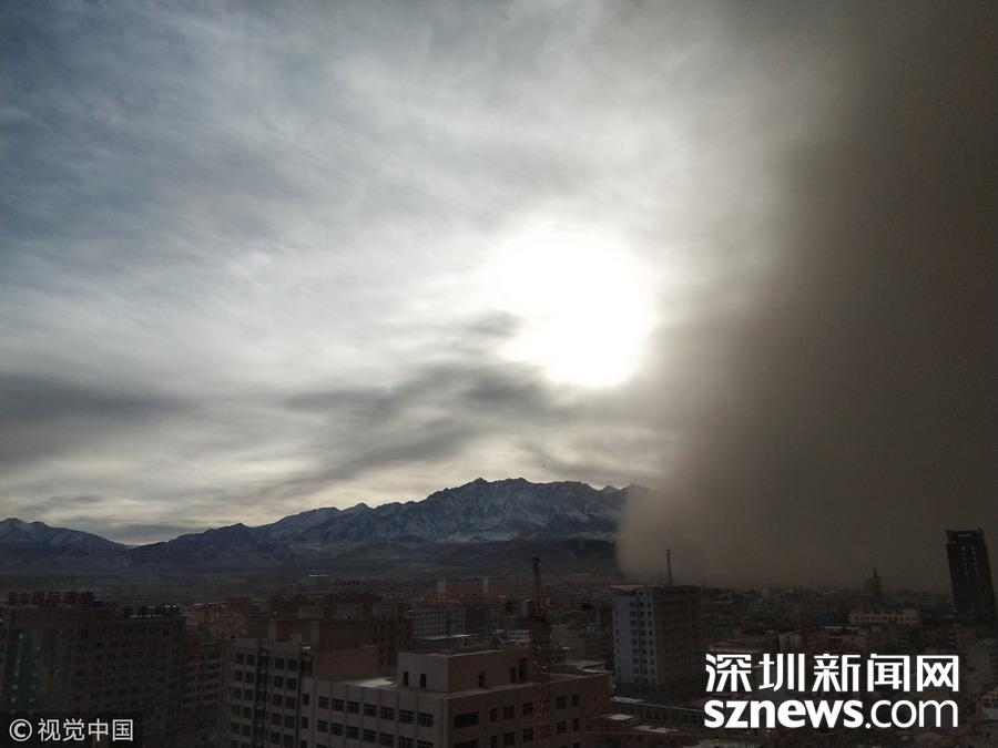 2018年11月25日,甘肅張掖,當?shù)赝辉馍硥m暴襲擊。