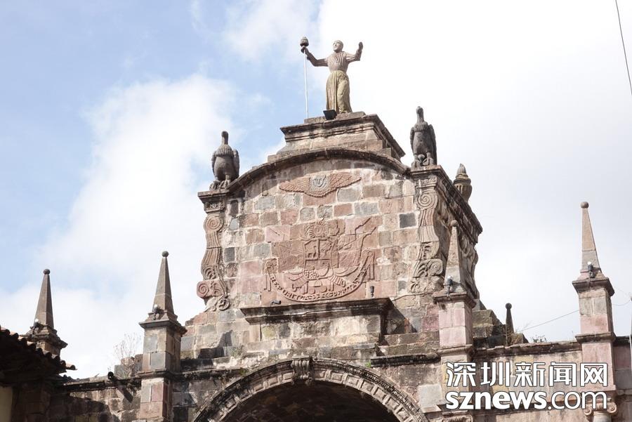 后來西班牙殖民者又修建了大批屋舍,兩種建筑風(fēng)格融合,被譽(yù)為西班牙—印加的獨(dú)特建筑方式。中心是武裝部隊(duì)廣場,正中聳立著一位印第安人的全身雕像。李仁奇攝