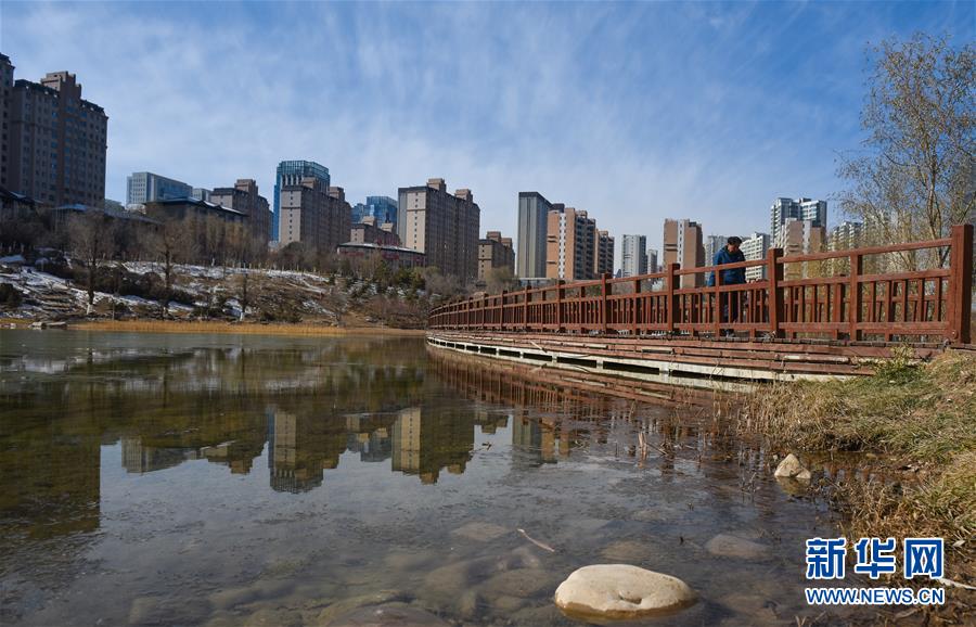 11月28日,一名市民在西寧市海湖新區(qū)的公園內(nèi)行走。 新華社記者 吳剛 攝