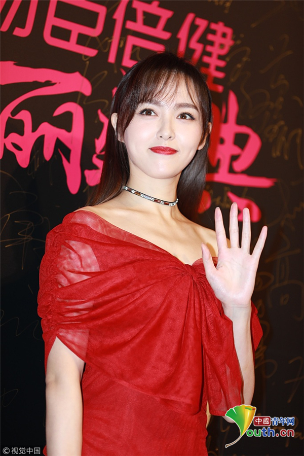 唐嫣紅色紗裙知性溫婉 胸前蝴蝶結(jié)點(diǎn) ...