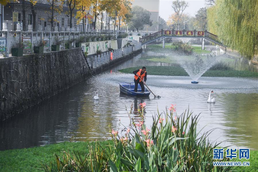 11月28日,長興縣虹星橋鎮(zhèn)港口村東港內(nèi),河長孫根法在打撈水面漂浮物。東港全長1500米,環(huán)繞港口新村。2012年,新村建成后,港口村通過加固河岸、清理河道、種植浮草等方式對東港進行生態(tài)治理,并由該村黨總支書記孫根法擔任河長,定期開展巡查,引導村民自覺維護河道整潔。 新華社記者 徐昱 攝