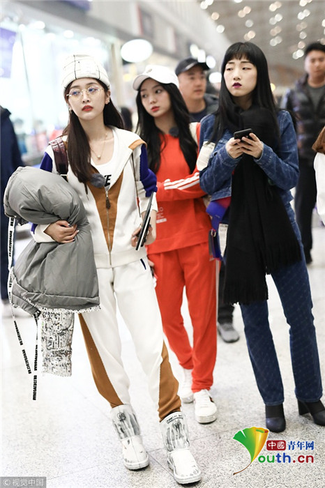 2018年12月3日,北京,“火箭少女101”全體成員現(xiàn)身機(jī)場(chǎng)前往國(guó)外錄制團(tuán)總綜。其中孟美岐戴著墨鏡,一身全黑運(yùn)動(dòng)裝扮,大步流星氣場(chǎng)超強(qiáng),楊蕓晴、yamy、楊超越等成員緊隨其后,大家還一起在機(jī)場(chǎng)玩起自拍,好不歡樂(lè)。