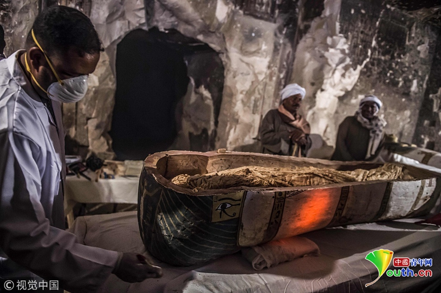 當?shù)貢r間2018年11月24日,埃及盧克索,考古學家在當?shù)匕l(fā)掘出一處墓穴,在其中發(fā)現(xiàn)石棺、木乃伊等文物,時間可追溯至公元前4-7世紀。