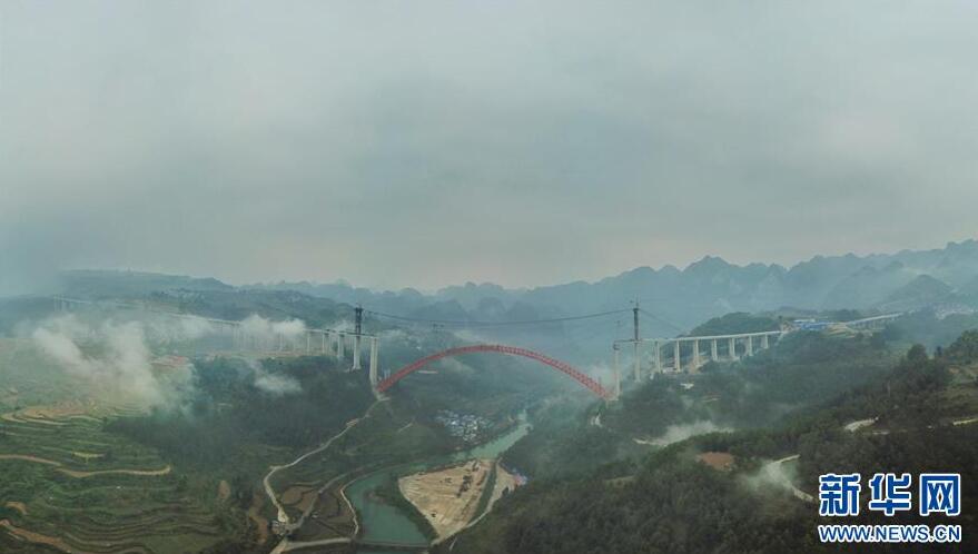 在重慶涪陵拍攝的渝懷鐵路涪秀二線重點工程——烏江右線大橋(10月23日無人機拍攝)。10月23日,由中鐵四局承建的渝懷鐵路涪秀二線重點工程——烏江右線大橋主跨成功合龍,標志著大橋主體工程全部順利結(jié)束。烏江右線大橋項目全程460.1米,主跨192米,跨越烏江和319國道。在兩年多的建設過程中,施工人員攻克了“不等高墩”“不對稱邊跨”“邊跨入隧”等多個技術難題。新華社記者王全超攝