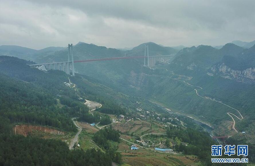 畢都高速公路北盤江大橋是杭瑞高速公路畢都段的控制性工程,位于貴州省和云南省交界處,由貴州省和云南省共建。該橋橋面至江面高差達565米,成為目前世界第一高橋。主橋為鋼桁梁斜拉橋,主跨720米,目前位居同類型橋梁2016年12月29日正式通車。