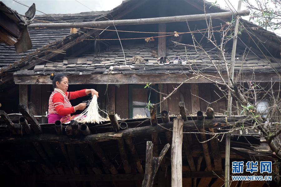 12月4日,在云南省瀾滄拉祜族自治縣酒井鄉(xiāng)勐根村老達(dá)保寨,村民在露臺上做農(nóng)活。 新華社記者張瑞琪攝