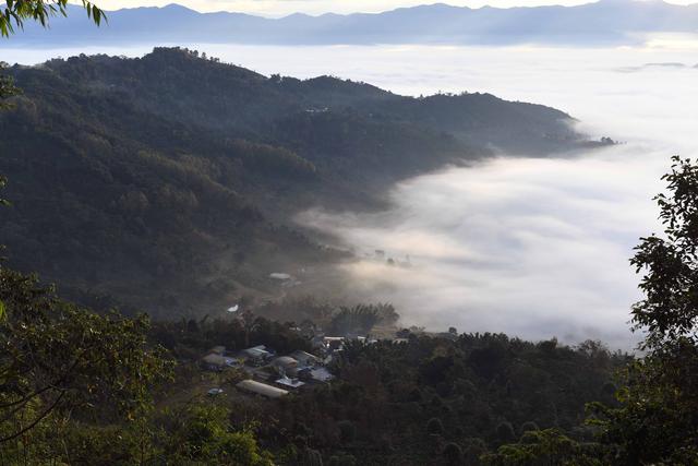 12月5日,云南省普洱市瀾滄拉祜族自治縣景邁山云霧繚繞,蔚為壯觀(無(wú)人機(jī)拍攝)。 新華社記者楊宗友 攝影報(bào)道
