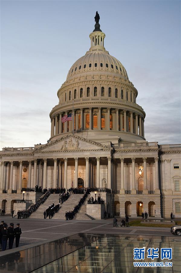 12月3日,在美國首都華盛頓,美國前總統(tǒng)喬治·赫伯特·沃克·布什(老布什)的靈柩抵達國會大廈。