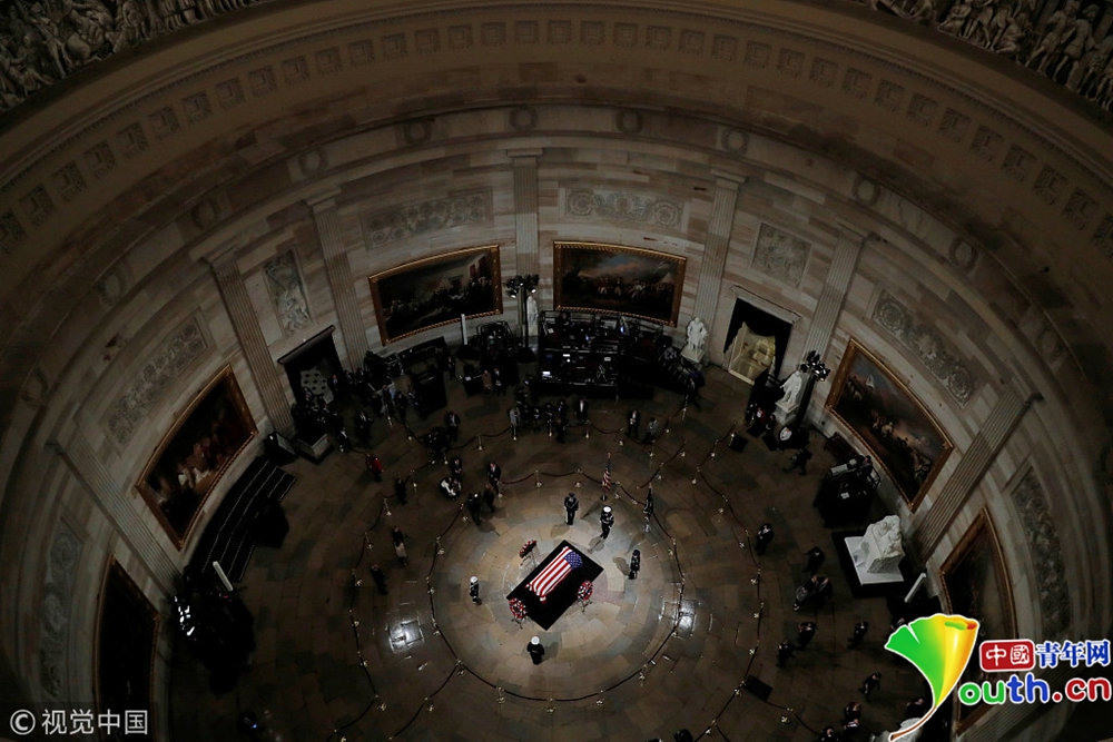 老布什靈柩安放在國會(huì)圓形大廳 小布什出席儀式