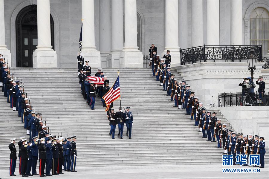 12月3日,在美國首都華盛頓,美國前總統(tǒng)喬治·赫伯特·沃克·布什(老布什)的靈柩抵達(dá)國會大廈。