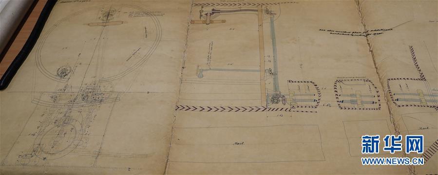 這是11月2日,在英國紐卡斯?fàn)柵臄z的橫跨在泰恩河上的紅白兩色的鋼鐵旋轉(zhuǎn)橋泰恩橋。當(dāng)年,致遠艦就是從這里駛向大海,開啟東方征程。 新華社記者日前在紐卡斯?fàn)柼┒鳌枡n案館查找北洋海軍史料時發(fā)現(xiàn)一套七張、檔案名為“中國巡洋艦舵機設(shè)計圖”的原始圖紙。塵封百年,甲午海戰(zhàn)中抗擊日艦后沉沒的清北洋海軍致遠艦部分原廠設(shè)計圖紙在其建造地——英國紐卡斯?fàn)柺械囊患覚n案館首次被發(fā)現(xiàn),為打撈那段悲壯的歷史提供了重要參考。 新華社記者 韓巖 攝