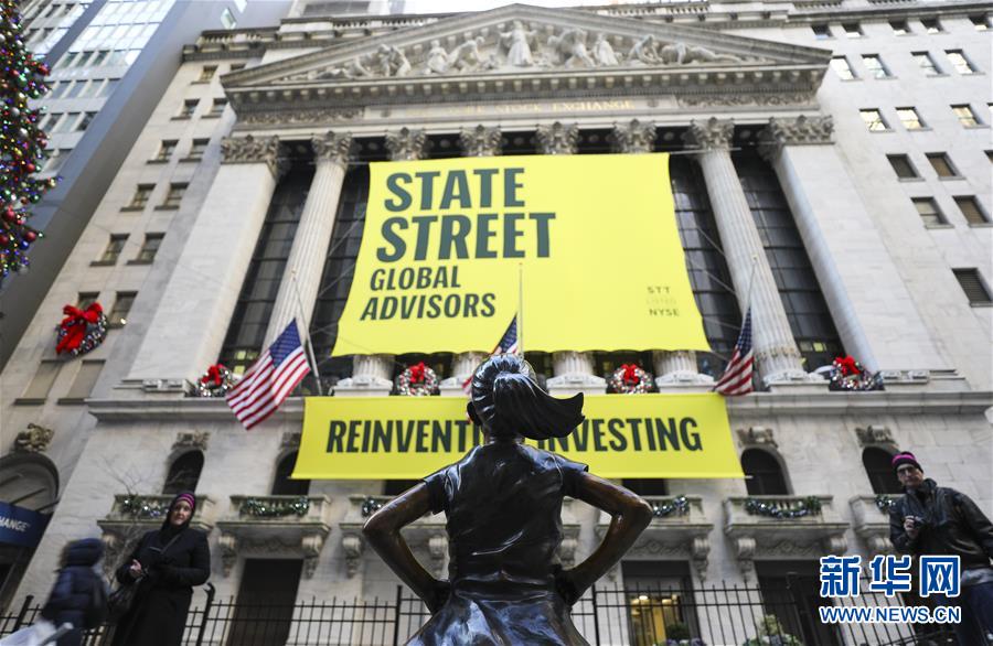 這是12月10日在美國(guó)紐約證券交易所前拍攝的“無(wú)畏女孩”銅像。 新華社記者 王迎 攝