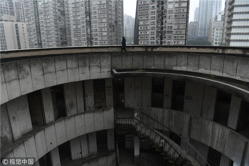 2018年12月6日,重慶江北紅旗河溝汽車站內(nèi),有一棟獨(dú)特的八層圓環(huán)狀建筑,底層每天有不少進(jìn)出站的客車通行。