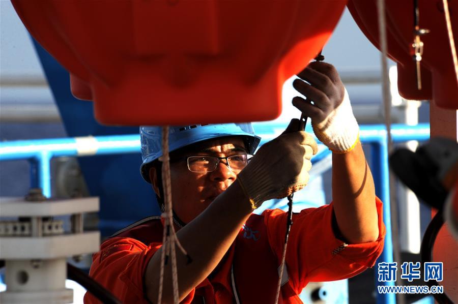 考察隊(duì)員在布放“彩虹魚(yú)”著陸器前進(jìn)行檢查工作(12月10日攝)。 由上海海洋大學(xué)和西湖大學(xué)聯(lián)合組成的“彩虹魚(yú)”科考團(tuán)隊(duì),12月11日在全球最深的海溝——馬里亞納海溝成功完成兩臺(tái)“彩虹魚(yú)”第二代著陸器的萬(wàn)米級(jí)海試,深度分別為10918米和10899米。 新華社記者 張建松 攝