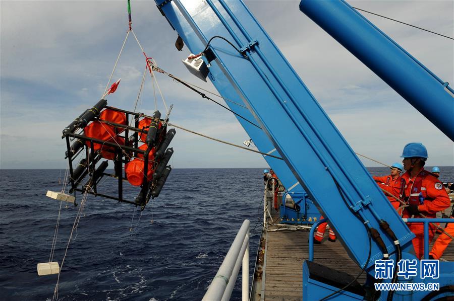 考察隊(duì)員將負(fù)責(zé)采集海水的“彩虹魚”第二代著陸器回收到甲板(12月11日攝)。 由上海海洋大學(xué)和西湖大學(xué)聯(lián)合組成的“彩虹魚”科考團(tuán)隊(duì),12月11日在全球最深的海溝——馬里亞納海溝成功完成兩臺(tái)“彩虹魚”第二代著陸器的萬(wàn)米級(jí)海試,深度分別為10918米和10899米。 新華社記者 張建松 攝