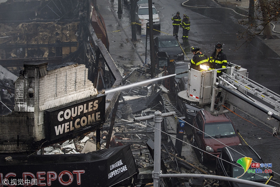 美國紐約發(fā)生大火吞噬六家商鋪 消防員撲滅火災余燼