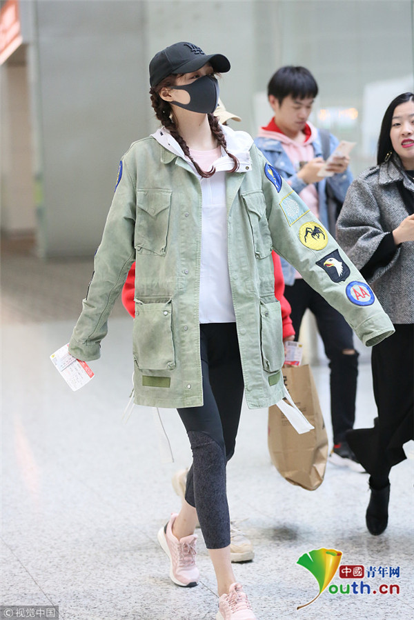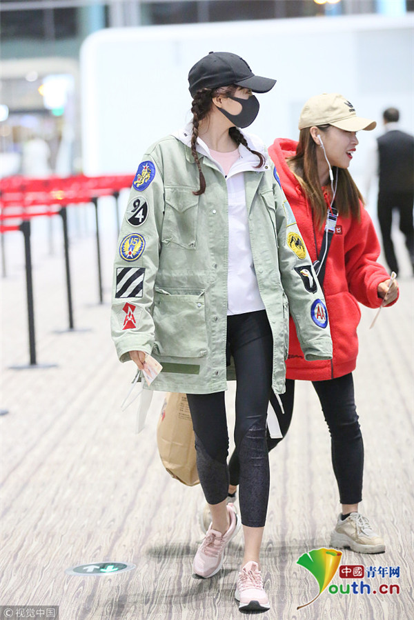 2018年12月18日訊,廣東省廣州市,近日,關曉彤現身廣州白云機場,穿的還是那件多次在機場穿過的工裝外套,看來關曉彤很喜歡這件男友風外套,當天其一路與助理熱聊不斷,不時張開雙臂似隨時“起飛”!