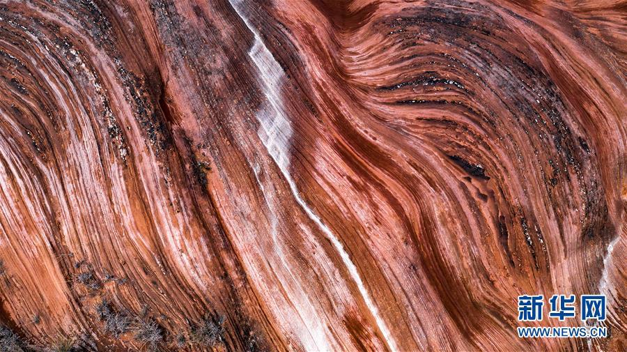 2018年10月21日在陜西省延安市安塞區(qū)坪橋鎮(zhèn)航拍的王家灣丹霞地貌。 大地之色,俯仰之間;壯美山河,是我的祖國。2018年,新華社記者操縱無人機(jī)“飛閱”華夏大地,在最美的時(shí)節(jié),定格下她的色彩斑斕。 新華社記者 陶明 攝