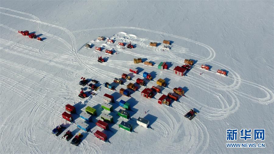 12月19日,中國第35次南極科考隊泰山隊和昆侖隊向南極內(nèi)陸腹地行進(無人機拍攝)。