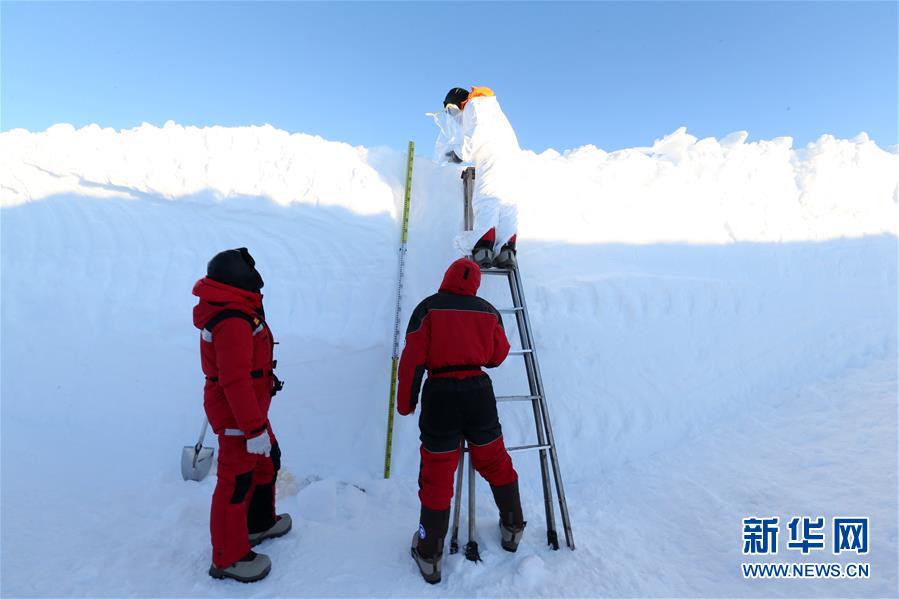 12月20日凌晨,科考隊員進行本次科考中的首次雪坑樣品采集。