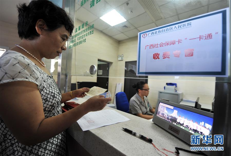 在廣西壯族自治區(qū)人民醫(yī)院,從北海到南寧異地就醫(yī)的鄭曉榮持社會保障卡在結(jié)算醫(yī)藥費(fèi)(2015年6月30日攝)。 歷史進(jìn)步的背后,必有堅(jiān)強(qiáng)領(lǐng)導(dǎo)力量的引領(lǐng)。 “堅(jiān)持黨的領(lǐng)導(dǎo),全面從嚴(yán)治黨,是改革開放取得成功的關(guān)鍵和根本?!绷?xí)近平總書記總結(jié)改革開放40年歷史和實(shí)踐作出這一重要論斷。 歷史關(guān)頭,中國共產(chǎn)黨的關(guān)鍵抉擇,改變了當(dāng)代中國的命運(yùn); 宏偉征程,中國共產(chǎn)黨帶領(lǐng)億萬人民在改革開放實(shí)踐中,實(shí)現(xiàn)歷史性跨越; 面向未來,中國共產(chǎn)黨肩負(fù)實(shí)現(xiàn)中華民族偉大復(fù)興的歷史使命,把改革開放繼續(xù)推向前進(jìn)。 新華社記者李斌攝